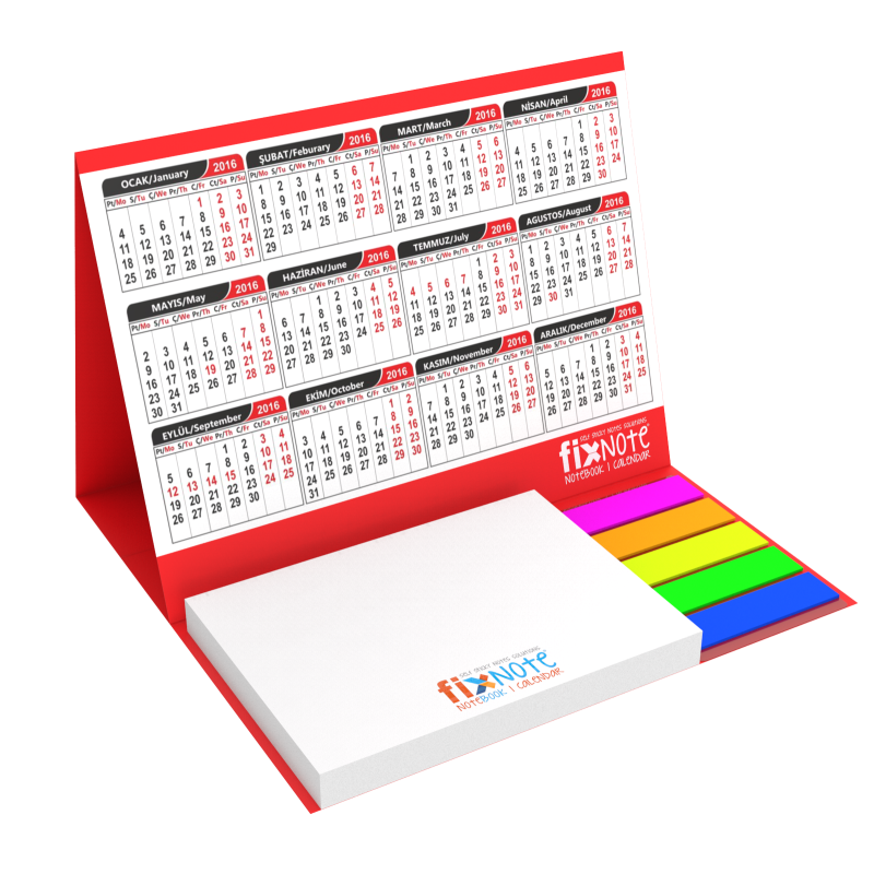 Bristol standlı yapışkanlı notluklu, indeskli takvim